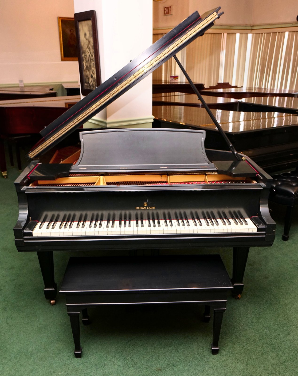 Steinway "M", 5' 7" finished in satin ebony and matching bench, with Ivory keys and ebony sharps. Impeccable condition. One owner piano. Recently tuned and regulated. Ready for a new home. A true gem. Be sure to ask for serial #311353.