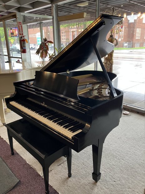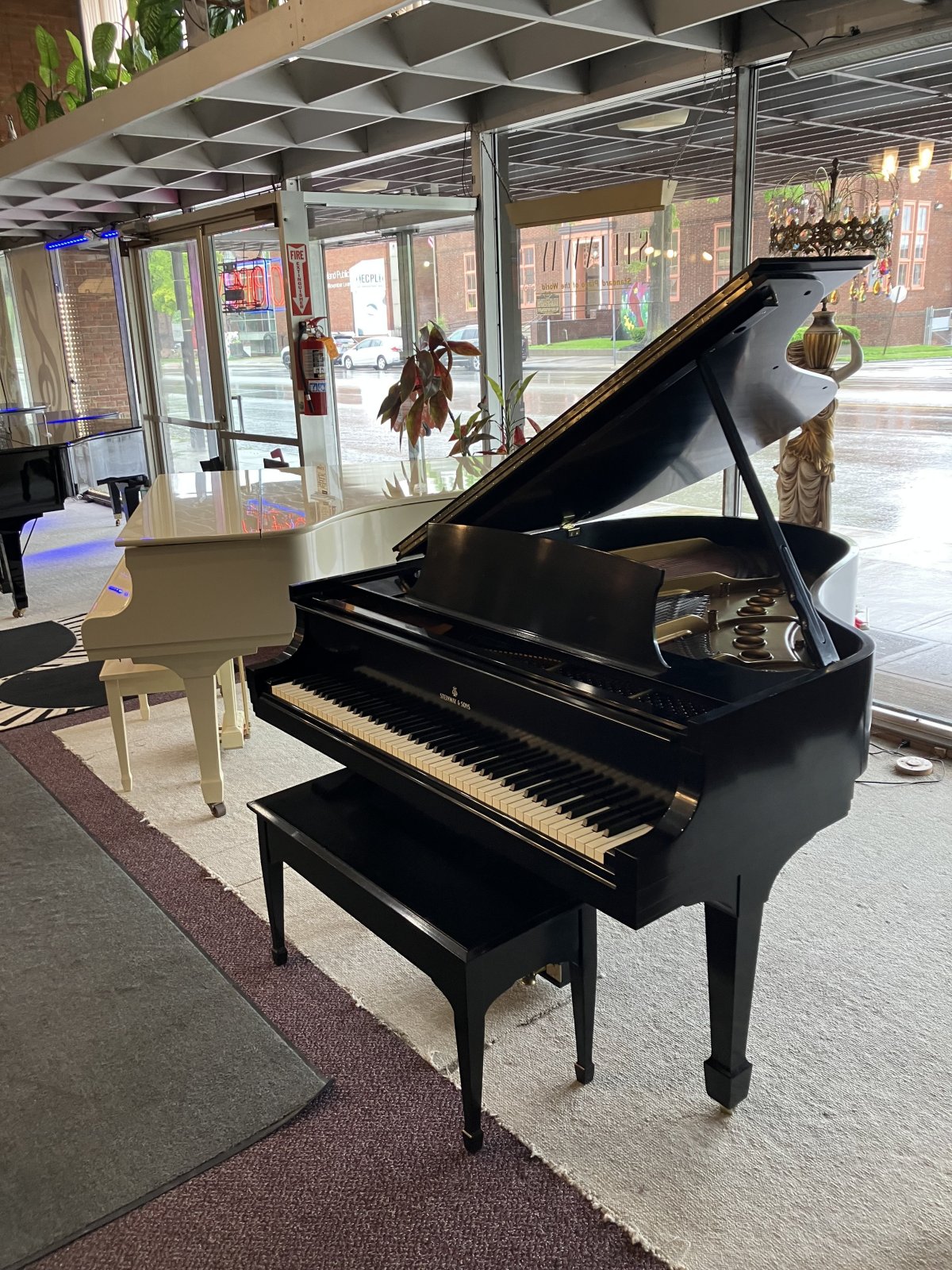 Steinway “L”, finished in a lustrous satin ebony with its matching padded duet bench. Just tuned and ready for FREE local delivery to your home or business. Includes our two-year warranty! Call now and ask about serial #266868.