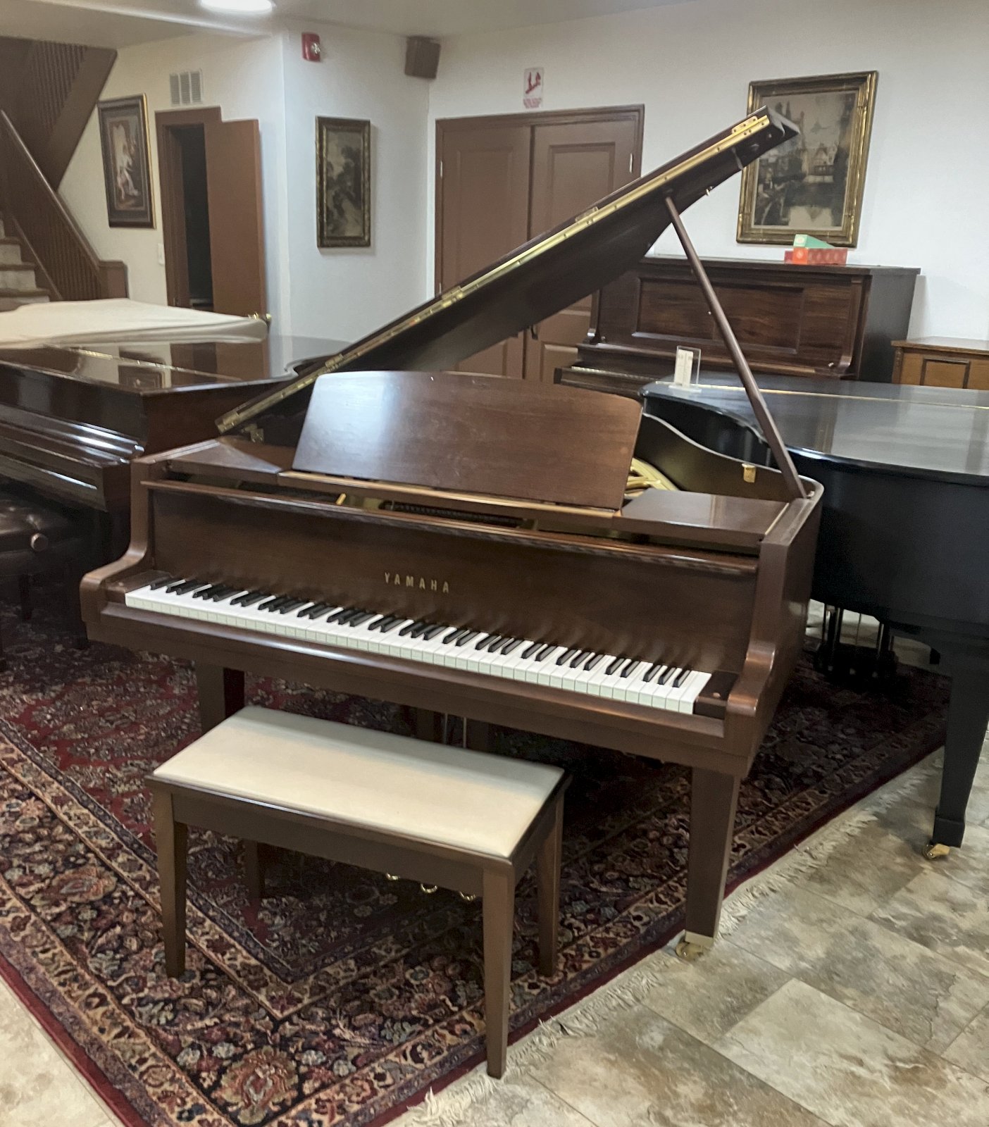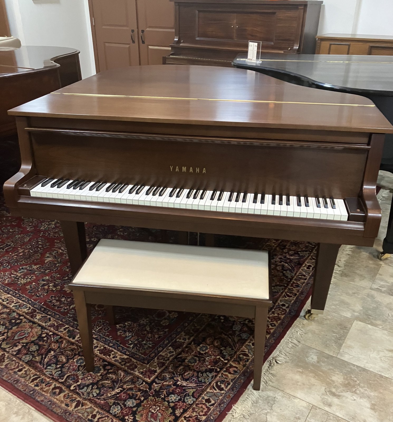 Yamaha 5’ 8” Grand Piano, Model “G2”. Beautiful Walnut finish with its matching bench. Includes free in-home delivery and setup. Ask for serial# E2343656.