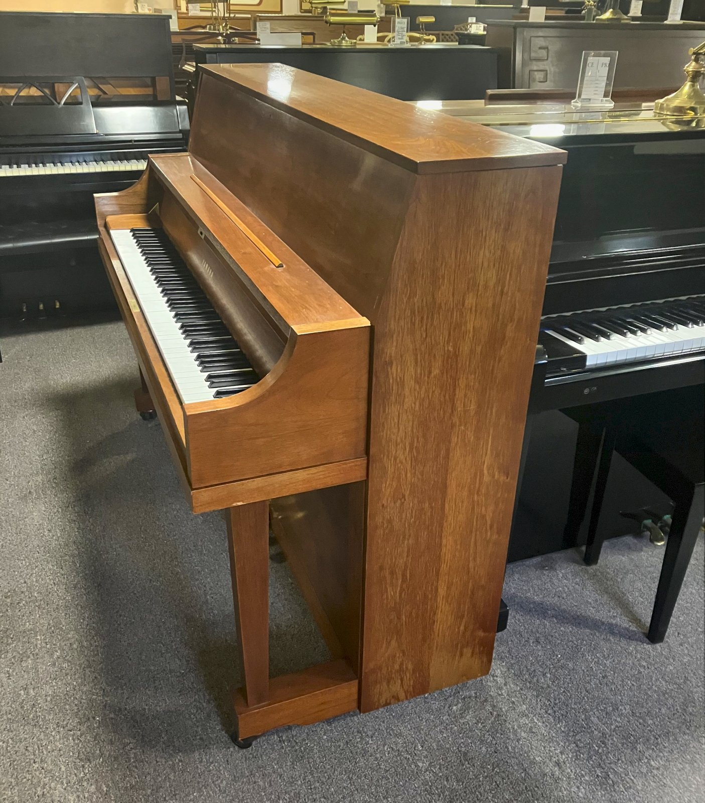 Kohler & Campbell Console. You will have a difficult time trying to find a better instrument than this console. Not a scratch will be found on the Walnut finish, nor its matching bench. This piano has fantastic touch and tone and will fit the most demanding of pianists. Our technicians have inspected this console thoroughly, and we proudly put our two-year warranty stamp on it. Ask for serial #535067.